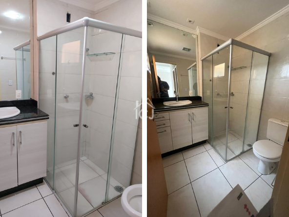 2 quartos com armário embutido; 1 banheiro com box e gabinete com espelho; Sala de estar com acabamento em sanca, iluminação embutida e ventilador de teto; Cozinha planejada com Cooktop, forno embutido e gás encanado; Área de serviço com armário embutido; Vaga de garagem em frente ao bloco.